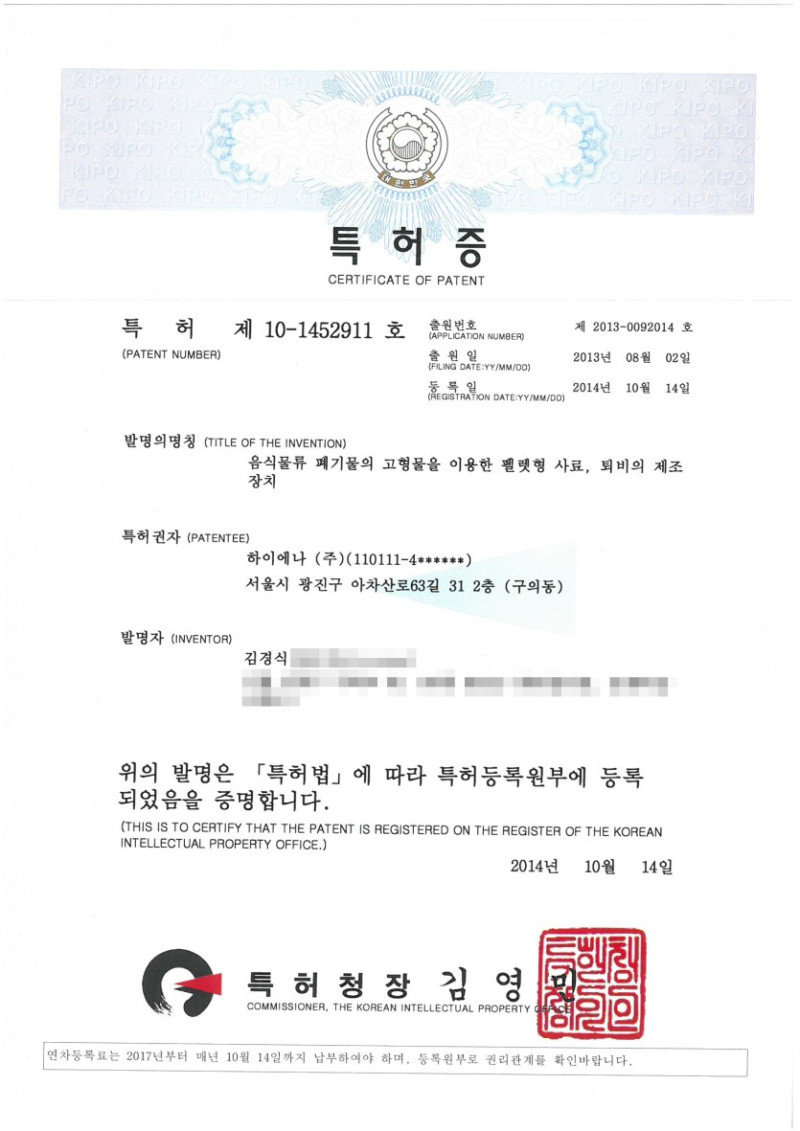 특허 제10-1452911호